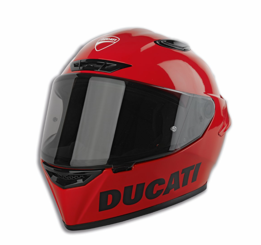 Ducati Logo es un casco integral ecléctico que se adapta tanto al uso urbano como al deportivo de carretera. La calota es de TRICARBOCO, una combinación de carbono y fibra pegado con resina, caracterizada por diferentes gramajes y cargas de rotura, unido a material compuesto de aramida, que permite crear una calota de peso reducido pero resistente a los golpes. La calota interior está constituida por poliestireno de densidad diferenciada estudiada para permitir una absorción gradual y progresiva de la fuerza de impacto generada por un golpe. El revestimiento interior es de tejido Hydrocool, ligero, suave y transpirable y está dotado de interiores y almohadillas laterales extraíbles, lavables y sustituibles. La visera de policarbonato PINLOCK Max Vision 70, en clase óptica 1, está dotada de bloque lateral para una mejor estabilidad; se puede extraer fácilmente mediante un práctico mecanismo que no prevé el uso de herramientas. Completan la dotación el cierre con correa D-ring y las tomas de aire que, con el sistema de ventilación, ofrecen un eficiente recambio de aire y favorecen bienestar y lucidez a la conducción. Las formas dinámicas del casco Ducati Logo combinan con un estilo sobrio, pero al mismo tiempo sorprendente. Las tres variantes de color, blanco Artic, negro dark y rojo Ducati, permiten combinarlo con el diseño y los acabados de la moto, creando un total look que no pasará desapercibido.