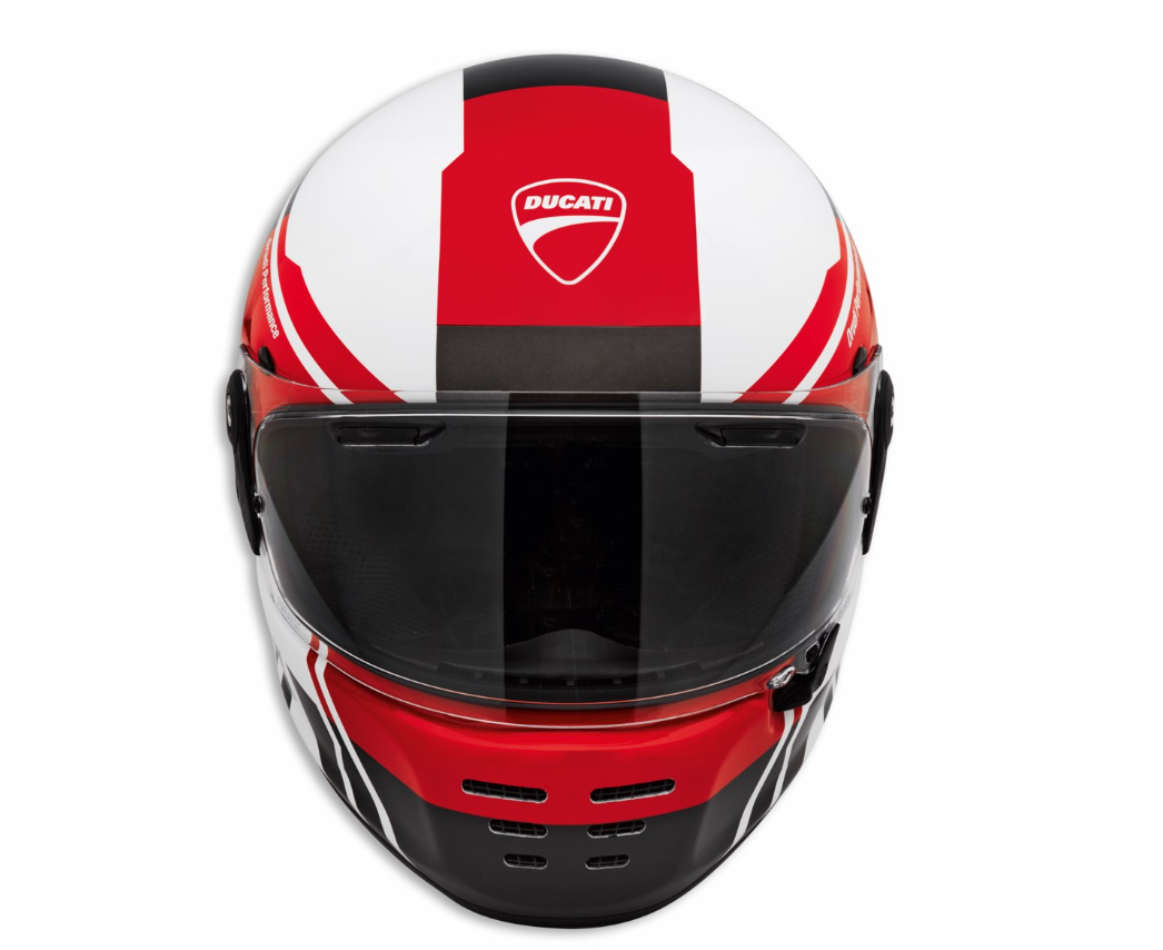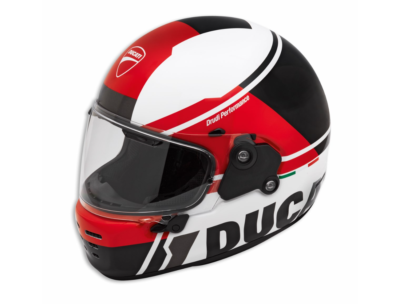 Monta tu Ducati con estilo y seguridad con el casco Ducati Theme V2 de diseño moderno y deportivo ideado por Drudi Performance con un acabado brillante y bloques de color, perfectamente combinado con las prendas de la colección Ducati. La calota exterior Peripherally Belted e-Complex Laminate creada con nuevos materiales ofrece una óptima solución intermedia entre rigidez, resistencia y peso, manteniendo inalterada la capacidad de contrarrestar los golpes. El interior, de material analérgico extraíble y lavable, ofrece apoyo en una zona más amplia gracias al Facial Contour System (FCS), un soporte elástico de espuma que se comprime y se expande ofreciendo una vestibilidad más cómoda. A la visera con tecnología VAS (sistema de eje variable) se añade la pequeña visera interior con el exclusivo sistema de regulación patentado Pinlock® que permite regular la ventilación y el empañamiento desde el exterior mediante un simple gesto. El sistema está dotado también de un mecanismo de apertura y cierre que permite un aislamiento y una óptima hermeticidad. Las prestaciones excepcionales están garantizadas también por el sistema FFS, que reduce el ruido del viento y la turbulencia aumentando la disipación de aire caliente, mientras que la adherencia conforme a los estándares de seguridad más elevados es garantizada por el sistema de liberación de emergencia (ERS) que se implementa tirando de las relativas lengüetas naranjas en el interior. Este casco ligero y moderno representa la quintaesencia del confort a la vez que ofrece un alto nivel de protección para un estilo de conducción sin medias tintas.