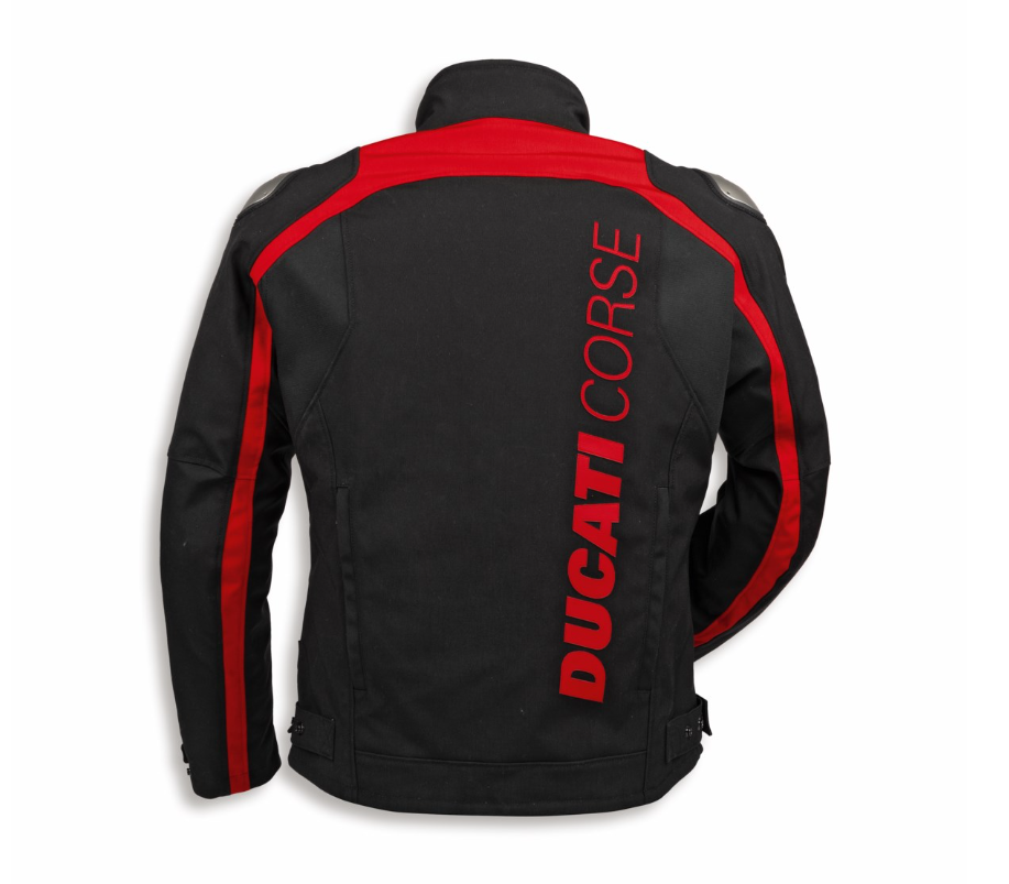La combinación del diseño de una chaqueta deportiva con las características técnicas de una prenda de turismo ha dado lugar a la chaqueta de tejido Ducati Corse Tex C6, producida por Dainese en exclusiva para Ducati y diseñada por Drudi Performance.