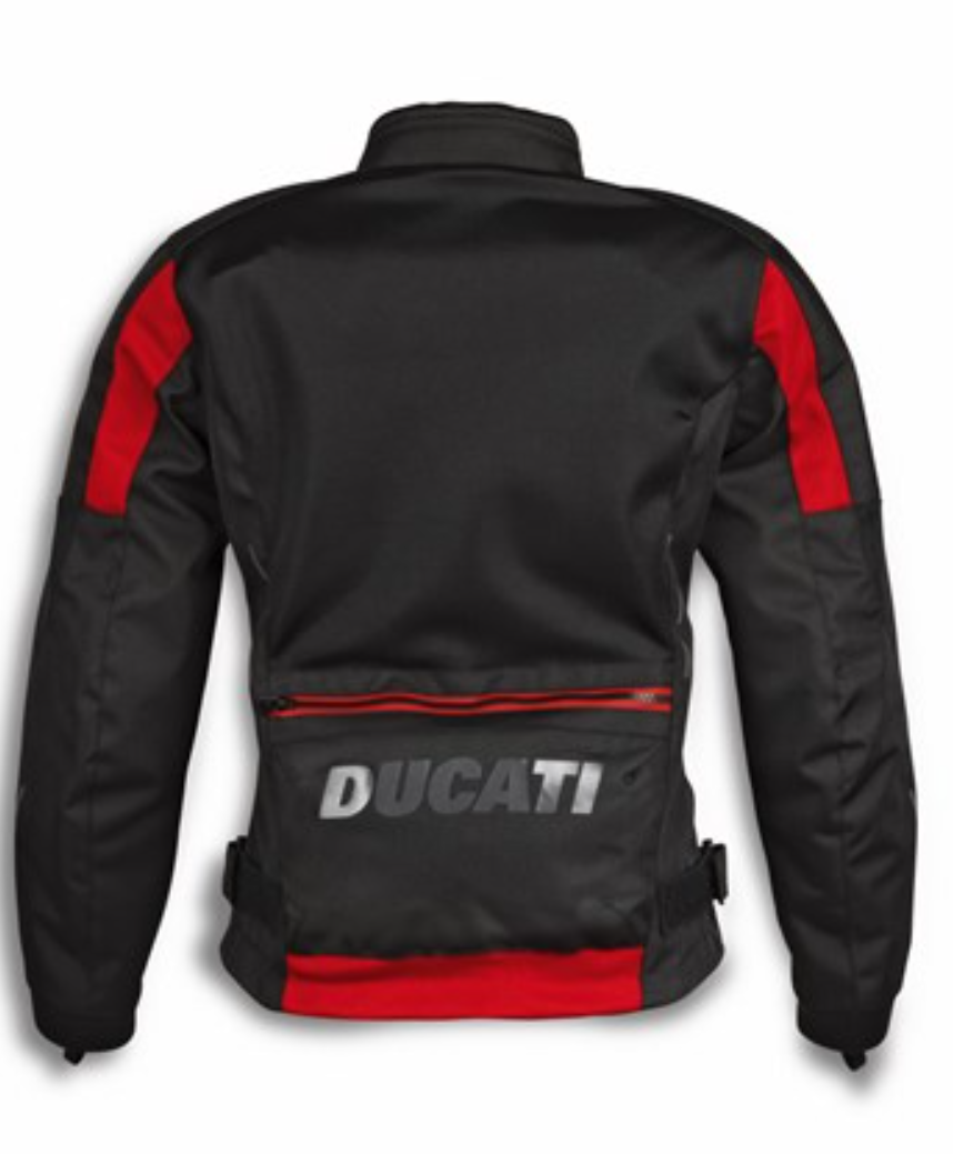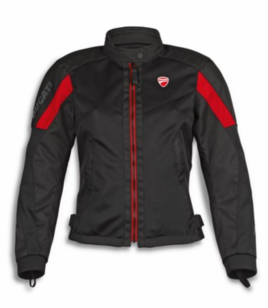 Diseño moderno y distintivo para la chaqueta en versión para mujer Flow C5 diseñada por Drudi Performance y específica para llevar en verano en países con climas cálidos. Las amplias zonas de red favorecen el paso de aire mientras que la membrana extraíble H2Out® tiene una función antilluvia, transpirable y rompeviento dependiendo de su uso, encima o debajo de la chaqueta. La prenda está dotada de un bolsillo en la espalda donde guardar la membrana cuando no se utiliza y un bolsillo impermeable donde colocar el teléfono móvil y los documentos importantes con total seguridad. La chaqueta ofrece confort y seguridad gracias a las protecciones en los hombros y codos, a la predisposición para la inserción del protector de espalda – para comprar por separado- y a las impresiones reflex que aumentan la visibilidad. Crea el look perfecto para las salidas con tu compañero con esta chaqueta disponible para hombre y para mujer, práctica y cómoda de llevar y confeccionada con bloques de color rojo y negro. ¡Una prenda de carácter refinado para viajar o desplazarse por la ciudad con gran estilo...obviamente estilo Ducati!