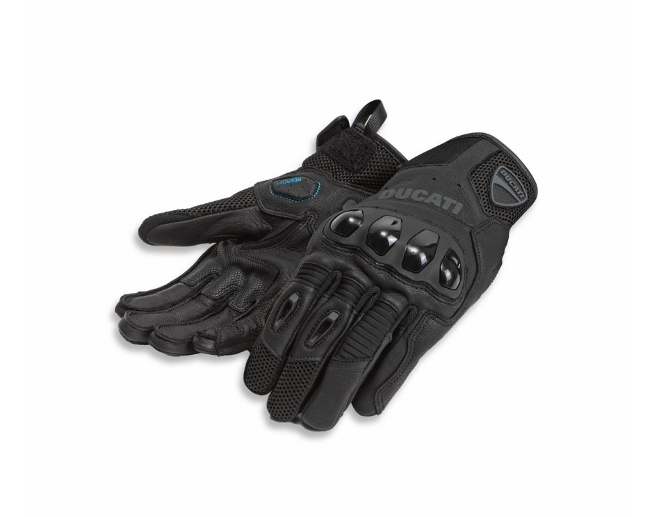 Semiventilados y confeccionados con una mezcla de malla 3D, microfibra y piel de cabra, garantizan no solo un excelente ajuste y libertad de movimiento, sino también una protección adecuada. La comodidad no está reñida con la seguridad, gracias a los protectores de nudillos de TPR con malla para ventilación, espuma de poliuretano e inserto en la palma, y ​​protectores de TPU para nudillos y palmas. Los paneles elásticos y el cierre de velcro ajustable en la muñeca, junto con la tecnología de espuma viscoelástica en la palma, los dedos y bajo los protectores de los nudillos, garantizan un ajuste perfecto, mientras que el forro transpirable 100 % poliéster mejora la comodidad térmica. La practicidad se ve reforzada por el material compatible con pantallas táctiles en la yema del dedo índice, que facilita el uso de dispositivos móviles. También disponibles en corte de mujer, seducen por su estilo decididamente urbano, acentuado además por el diseño moderno y llamativo de los dos colores diferentes, perfectos para interpretar el incomparable estilo Ducati de una manera al mismo tiempo más discreta y altamente icónica, añadiendo un toque de carácter a los desplazamientos urbanos.