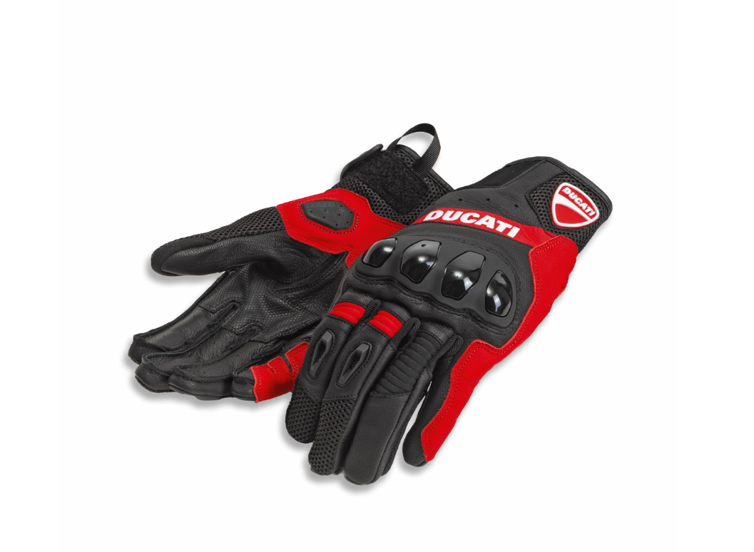 Semiventilados y confeccionados con una mezcla de malla 3D, microfibra y piel de cabra, garantizan no solo un excelente ajuste y libertad de movimiento, sino también una protección adecuada. La comodidad no está reñida con la seguridad, gracias a los protectores de nudillos de TPR con malla para ventilación, espuma de poliuretano e inserto en la palma, y ​​protectores de TPU para nudillos y palmas. Los paneles elásticos y el cierre de velcro ajustable en la muñeca, junto con la tecnología de espuma viscoelástica en la palma, los dedos y bajo los protectores de los nudillos, garantizan un ajuste perfecto, mientras que el forro transpirable 100 % poliéster mejora la comodidad térmica. La practicidad se ve reforzada por el material compatible con pantallas táctiles en la yema del dedo índice, que facilita el uso de dispositivos móviles. También disponibles en corte de mujer, seducen por su estilo decididamente urbano, acentuado además por el diseño moderno y llamativo de los dos colores diferentes, perfectos para interpretar el incomparable estilo Ducati de una manera al mismo tiempo más discreta y altamente icónica, añadiendo un toque de carácter a los desplazamientos urbanos.
