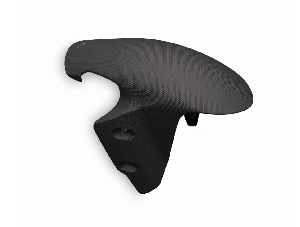 El inconfundible estilo de la motocicleta se ve realzado por este detalle de fibra de carbono, que aporta ligereza y enriquece su estética gracias a una geometría meticulosamente diseñada.