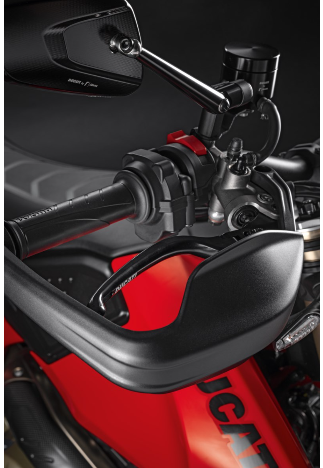 Desarrollada en colaboración con Rizoma, es un ejemplo de estilo y funcionalidad. Realizada de pieza maciza, se caracteriza por una línea típicamente deportiva. La leva es articulada, para evitar daños más graves en caso de caídas, y se puede regular con el dispositivo de ajuste especial para cambiar la distancia del puño y mejorar la sintonía con la moto.