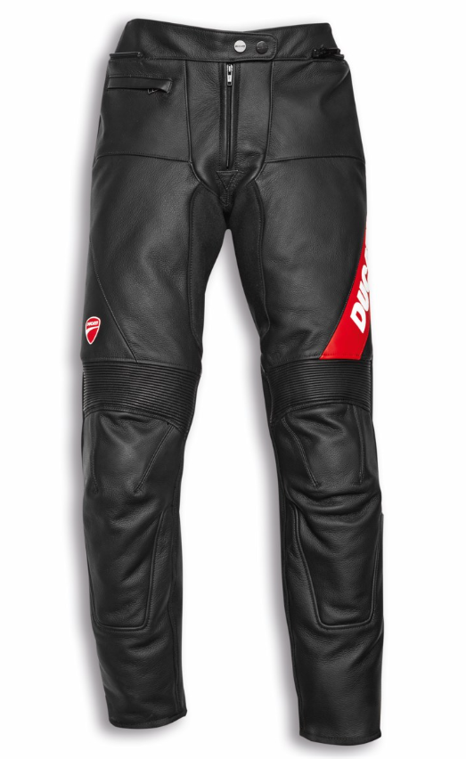 Fabricados en piel de vacuno suave y resistente, ofrecen una excelente libertad de movimiento. La seguridad de esta prenda con certificación CE está garantizada por protectores de espinillas y rodillas, y suaves refuerzos en la cadera. El forro interior Nanofeel® y las inserciones elásticas en las rodillas maximizan la comodidad, mientras que la práctica cremallera permite combinarlos con todas las chaquetas de la colección, lo que los hace extremadamente versátiles. Disponibles en versiones para hombre y mujer, garantizan un ajuste perfecto para todos los pilotos. El look esencial de esta prenda se realza con inserciones rojas con el logotipo de Ducati en contraste, para un estilo clásico e icónico: la prenda perfecta para disfrutar de todos los placeres de la conducción deportiva, con el estilo Ducati perfecto.
