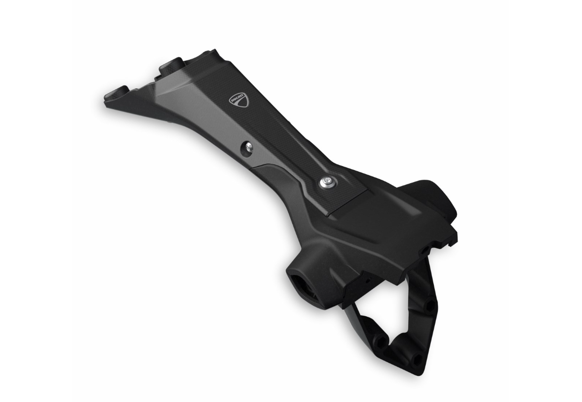 Práctico y rápido de desmontar cuando se utiliza en la vía, permite alojar el cableado de forma segura y oculta. Está disponible en dos versiones, una larga homologada para uso en carretera y otra corta no homologada para uso exclusivo en circuito. La instalación de la versión larga es compatible con intermitentes de serie o Ducati Performance, mientras que la configuración corta proporciona un conjunto de intermitentes racing en un formato compacto e integrado en el diseño del portamatrículas. Un accesorio que realza la estética y el carácter deportivo de la motocicleta, dotándola de un estilo atrevido e incomparable.