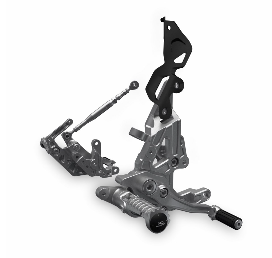 Ajustables en múltiples posiciones, permiten al piloto encontrar el ajuste perfecto para su cuerpo y estilo de conducción. Equipados con pedales de freno articulados y una palanca de cambios para minimizar el riesgo de rotura en caso de derrape, utilizan el sistema de cambio DQS estándar, que puede configurarse como cambio tradicional o como cambio invertido/de competición. Un accesorio esencial para los pilotos más exigentes que desean disfrutar al máximo de la Panigale.