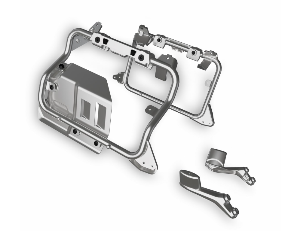 Par de prácticos accesorios necesarios para el montaje de maletas laterales de aluminio.